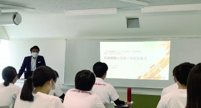 2022年7月8日(金)、福岡リゾート&スポーツ専門学校様の授業において特別講義の機会を頂き、弊社CBO兼CPOの花城 正也が「地域貢献×スポーツビジネス」というテーマで登壇。弊社もスポンサーを務めるなでしこリーグ所属「福岡J・アンクラス」と連携し、ゼミ活動を行っているスポーツビジネス科学生の方を中心に、24名がご清聴くださいました。