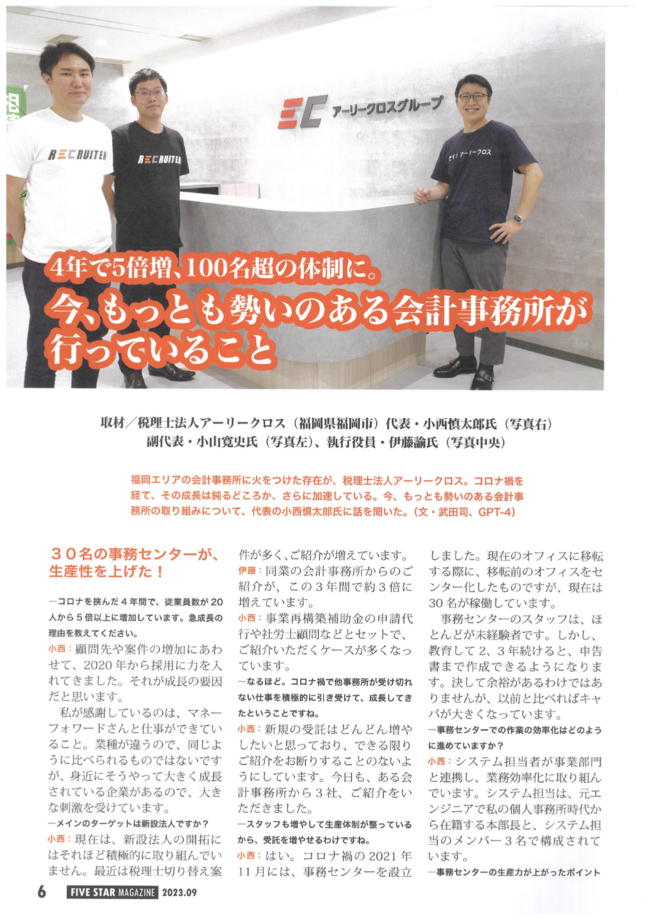 FIVE STAR MAGAZINE2023年9月号に弊社の記事掲載されました。